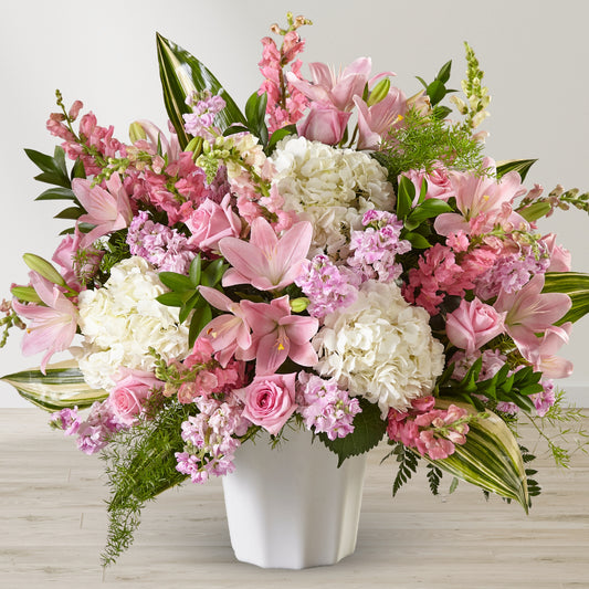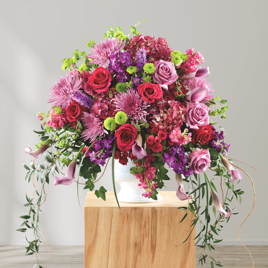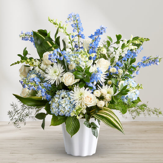When words fall short, flowers can speak volumes. Twinbrook Floral Design’s Pedestal & Floor Arrangements are thoughtfully designed to offer strength, beauty, and peace during life’s most tender moments. Arranged in large-scale vessels such as urns, tall vases, and floor baskets, these sympathy pieces are meant to accompany the base of a casket, frame a podium, or provide floral presence at the foot of a display.