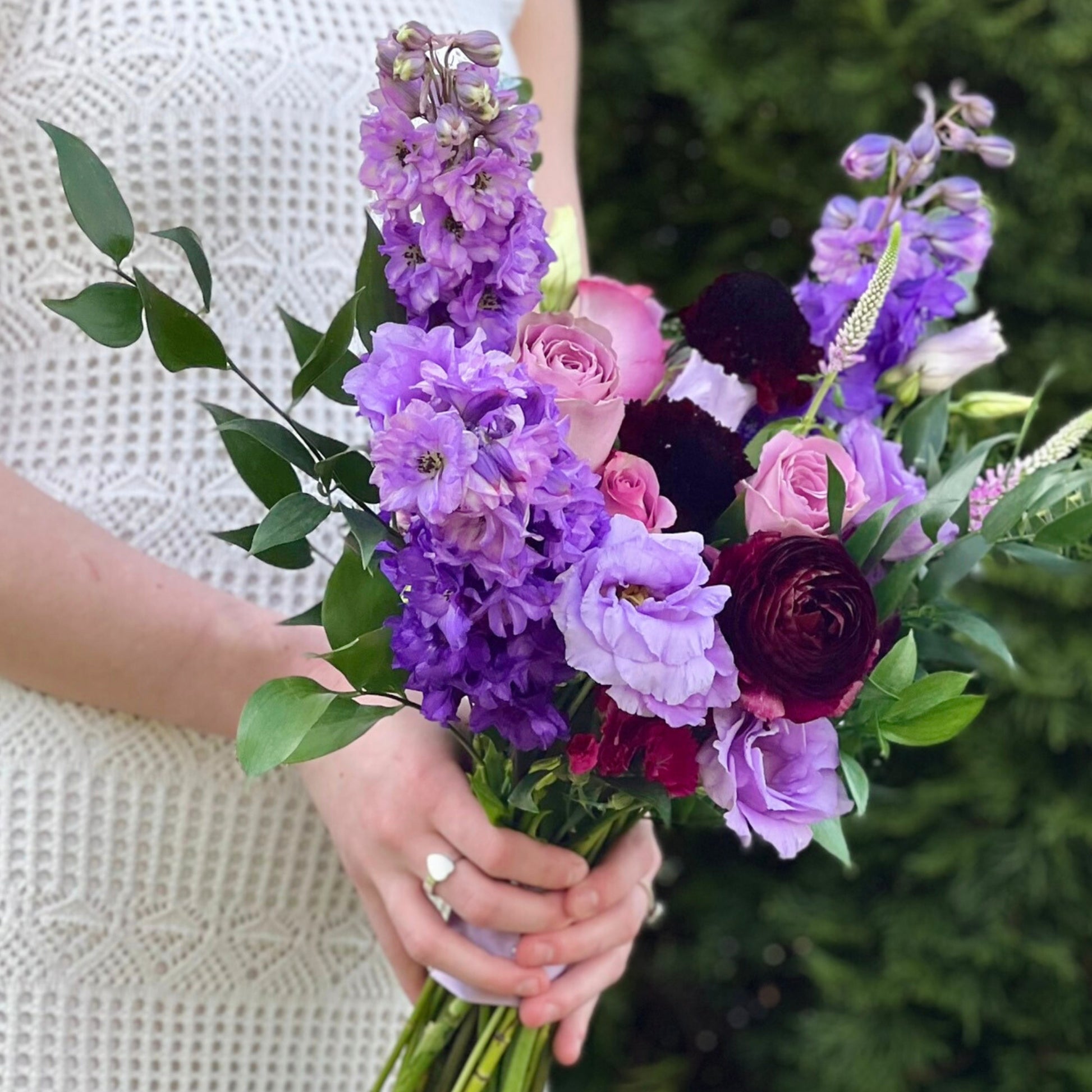 Amethyst Aura Bouquet – Handheld Lavender & Fuchsia Florals